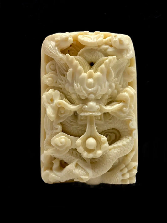 Chinese Dragon (龙) with Flaming Pearl (宝珠) and Bats (蝙蝠) Antler Carving
