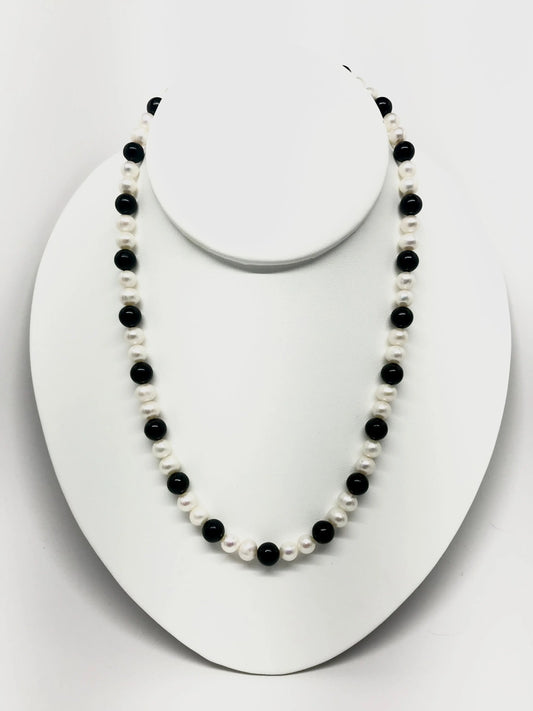 Pearl and Jet Necklace, Bracelet and Earrings Set