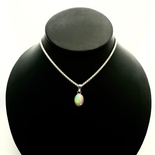 Ethiopian Opal Oval Pendant Sterling Silver – Natural Pinfire Play of Color