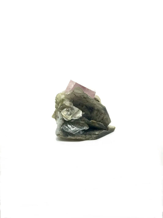 Pink Apatite With Calcite On Mica (Pakistan)